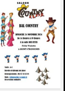 Le Dimanche 24 Novembre 2024, Après Midi Bal Country de 14h00 à 19h00, Salle des Fetes Félix Violette, à St Fromond (50620), Manche.