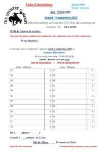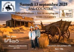 Le Samedi 13 Septembre 2025, Bal Country animé par *Tolyanimation*, chez *The Country Company*, à 20h00, Salle Polyvalente, Air de Camping Car, à Chamery (51500), Marne.
