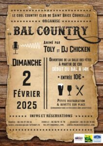 Le Dimanche 02 Février 2025, Après Midi Bal Country des *Cool Country Club*, animée par *Toly et DJ Chicken*, à 14h00, Salle des Fetes de St