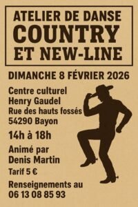 Le Dimanche 08 Février 2026, Après Midi Atelier Country et New Line, animée par *Denis Martin*, de 14h00 à 18h00, Centre Culturel Henry Gaudel, rue des Hauts Fossés, à Bayon (5429