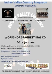 Le Dimanche 08 Jin 2025, Journée Country des *Indian Valley Country Longuyon* avec *Christine et Patrick* , de 10h30 à 19h00, avec Workshop Spaguetti et Bal cd, Salle Georges Brassens, Avenue du Général de Gaulle, à Longuyon (542