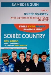 Le Samedi 08 Juin 2024, Soirée Country avec Concert des *Texas Sidestep*, à 20h30, Foire Expo, à Nancy (54), Meurthe et Moselle.