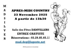 Le Dimanche 23 Novembre 2025, Après Midi Country à 13h30, Salle des Fetes de Damvillers (55), Meuse.