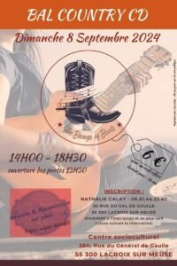 Le Dimanche 08 Septembre 2024, Après Midi Country Dance de 14h00 à 18h30, Centre Socioculturel, 28 A, rue du Général de Gaulle, à Lacroix sur Meuse (55300), Meuse.