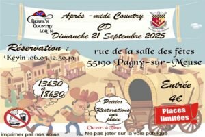 LeDimanche 21 Septembre 2025, Après Midi Bal Country cd, chez *Rebel’s Country Lor’n*, de 13h30 à 18h30, rue de la Salle des Fetes, à Pagny sur Me