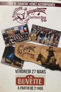 Le Vendredi 27 Mars 2026, Soirée Country des *Loch Country Danse 56*, à 21h00, La Buvette, à Grand Champ (56), Morbihan.