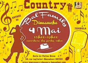 Le Dimanche 04 Mai 2025, Après Midi Bal Country Family , de 15h00 à 19h00, Salle du Vallon Boisé, 16 rue Tagliaferi, à Hennebont (56700), Morbihan.