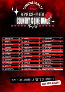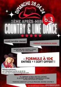 Le Dimanche 28 Avril 2024, Après Midi Country et Line Dance , animée par *Remi Vingert*, de 14h30 à 18h30, Espace le B23, rue du Casino, Cité des Loisirs D’Amnév