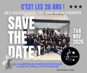 Les 07 et 08 Novembre 2026, Week End Country de L’association des *Amis de la Country*, qui Fêteront leurs 20 ans, Salle Aubépine, Complexe de