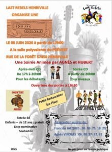 Le Samedi 06 Juin 2026, Soirée Country des *Last Rebels Henriville*,animée par *Agnès et Hubert*,