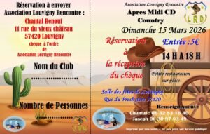 Le Dimanche 15 Mars 2026, Après Midi Bal Country cd chez *Little Rock Dancers*, de 14h00 à 18h00, Salle des Fetes, rue du Presbytère, à Louvigny (57420), Moselle.