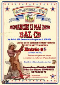 Le Dimanche 11 Mai 2025, Après Midi Bal Country cd chez *Only Road 57*, de 14h00 à 19h00, Centre Socio Culturel de Metz Vallières (57070), Moselle.