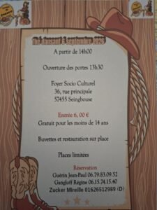 Le Dimanche 06 Septembre 2026, Après Midi Thé Dansant Country à 13h30, Foyer Socio Culturel, 36, rue Principale, à Seingbouse (57455), Moselle.