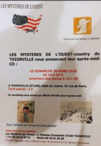 Le Dimanche 30 Mars 2025, Après Midi Bal Country des *Mysteres de L’Ouest Country*, de 14h00 à 19h00, Salle du Casino, 43, rue de Paris, à Thionville (57100), Moselle.