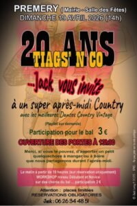Le Dimanche 19 Avril 2026, Après Midi Country des *Tiags’N Co*, qui Feteront leurs 20 ans à partir de 14h00, Salle des Fetes de Premery (58), Nièvre.