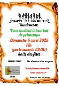 Le Dimanche 06 Avril 2025, Après Midi Bal Country de Printemps chez *Happy Dancing Boots*, à 14h00, Salle des Fetes de Vandenesse (58), Nièvre.