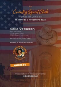 Le Samedi 02 Novembre 2024, Bal Country de 18h30 à 01h00, Parc Maingoval , 41, rue Victor Hugo, à Douchy les Mines (59282), Nord de la France.