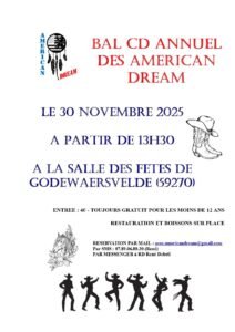 Le Dimanche 30 Novembre 2025, Après Midi Bal Country cd des *American Dream*, à 13h30, Salle des Fetes de Godewaersvelde (59270), Nord de la France.