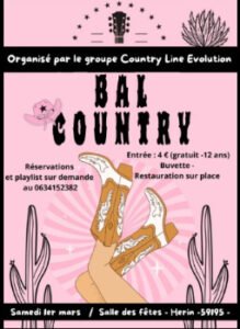 Le Samedi 1er Mars 2025, Bal Country des *Country Line Evolution*, Salle des Fetes de Herin (59195), Nord de la France.