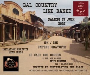 Le Samedi 13 Juin 2026, Bal Country Line Dance de 19h00 à 23h00, au Café des Orgues, 2 rue des Orgues, à Herzeele 59470), Nord de la France.