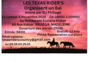 Le Samedi 08 Novembre 2025, Bal Country des *Texas Rider’s*,animé par *DJ Philippe*,