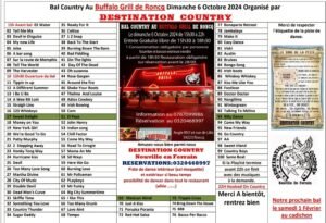 Le Dimanche 06 Octobre 2024, Bal Country ,organisé par *Destination Country*, de 15h30 à 22h00, au Buffalo Grill de Roncq, Angle RN7, rue de Lille , à Roncq (59) Nord de la France.