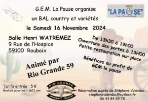 Accueil » Événements » (59) ROUBAIX / BAL COUNTRY ET VARIETES LE 16.11.24.