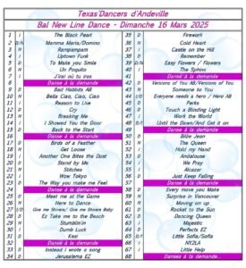 Bal New Line chez *Texas’Dancers*, animé par *Karine*, à 13h30, au Gymnase D’Andeville, rue Jean Jaurès, à Andeville (60570), Oise.