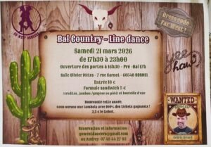 Le Samedi 21 Mars 2026, Bal Country Line Dance de 17h30 à 23h00, Salle Olivier Hétra, 7 rue Carnot,à Bornel (60540), Oise.
