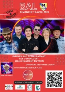 Bal Country de 13h30 à 20h00, avec Concert des *Texas Sidestep*, au Gymnase Guy de Maupassant, rue D’Enencourt, à Chaumont en Vexin (60240), Oise.