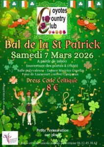Le Samedi 07 Mars 2026, Bal de la St Patrick à partir de 18h00, chez *Coyotes Country Club*,