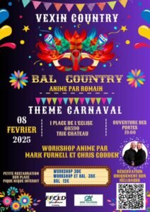 Le Samedi 08 Février 2025, Bal Country de *Vexin Country*, animé par *Romain*, sur le Thème *Carnaval*, à 19h00, 1, Place de L’église, à Trie Chateau (60590), Oise.