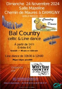 Le Dimanche 24 Novembre 2024, Après Midi Dance Country Celtic et Line Dance, à partir de 14h00, Salle Mazeline, Chemin de Maures, à Damigny (61), Orne