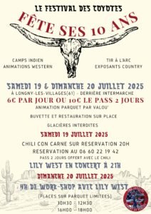 Les 19 et 20 Juillet 2025, aura lieu le Festival des Coyotes, qui Fetera ses 10 ans, avec *Lilly West *, derrière Intermarche de Longny les Villages (6