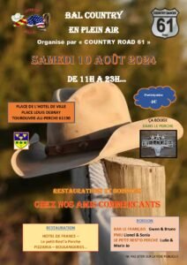Le Samedi 10 Aout 2024, Journée Country organisée par *Country Road 61*, de 11h00 à 23h00, Place de L’Hotel de Ville, Place Louis Debray, à Tourouvre au Perche (61190), Orne.