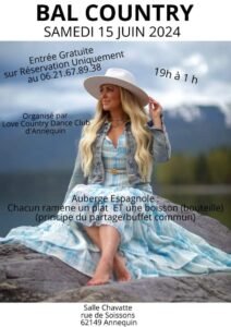 Le Samedi 15 Juin 2024, Bal Country de 19h00 à 01h00, Salle Chavatte, rue de Soissons, à Annequin (62149), Pas de Calais.