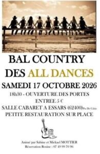 Le Samedi 17 Octobre 2026, Bal Country des *All Dances* à 18h30, Salle Cabaret à Essars (62400), Pas de Calais.