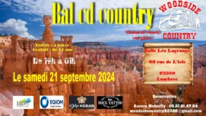Le Samedi 21 Septembre 2024, Bal Country des *Woodside Country*, de 19h00 à 01h00, Salle Léo Lagrange, 09, rue de L’Isle, à Lumbres (62380), Pas de Calais.