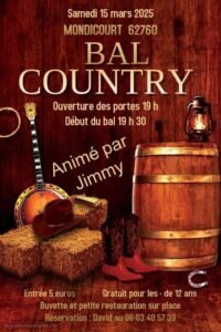 Le Samedi 15 Mars 2025, Bal Country animé par *Jimmy*, à 19h30, à Mondicourt (62760), Pas de Calais.