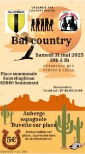 Le Samedi 31 Mai 2025, Bal Country des *Country Pelves*, de 19h00 à 01h00, Place Communale, sous Chapiteau, à Saudemont (62860), Pas de Calais.