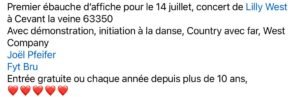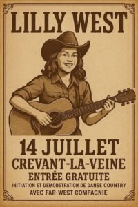 Le 14 Juillet 2025, Journée Country Music et Dance avec *Lilly West* à Cevant la Veine (63350), Puy de Dome.