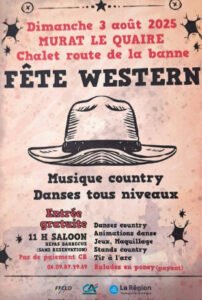 Le Dimanche 03 Aout 2025, Après Midi Fete Western avec Music Country, à 11h00, Chalet Route de la Banne, à Murat le Quaire (63246), Puy de Dome.
