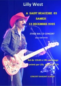 Le Samedi 13 Décembre 2025, Journée Country avec Stage, Bal Country cd et Concert de *Lilly West*, Salle des Fetes de St Beauzire (63), Puy de Dome.
