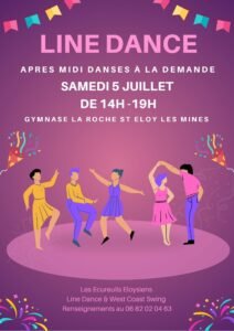 Le Samedi 05 Juillet 2025, Après Midi Bal Country Line Dance de 14h00 à 19h00, au Gymnase La Roche, à St Eloy les Mines (63), Puy de Dome.