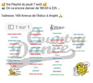 Le Jeudi 07 Aout 2025, Soirée Country des *Country Road 640) , de 18h30 à 22h00, 14 Avenue de L’Adour, à Anglet (64), Pyrénées Atlantiques .