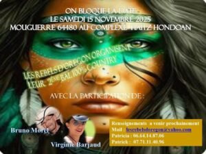 Le Samedi 15 Novembre 2025, 2ème Bal 100% Country chez *Les Rebels D’Oregon*, avec *Bruno Morel* et *Virginie Barjaud*, au Complexe Haitz Hondoan, à Mouguerre ( 64480), Pyrénées Atlantiques.