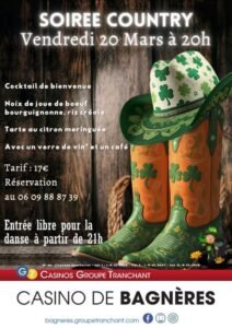 Le Vendredi 20 Mars 2026, Soirée Country à 21h00, au Casino de Bagnères (65), Hautes Pyrénées .