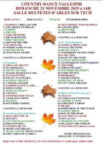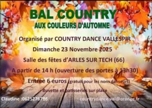 Le Dimanche 23 Novembre 2025, Après Midi Bal Country des *Country Dance Vallespir*, à 14h00, Salle des Fetes de Arles sur Tech (66), Pyrénées Orientales.