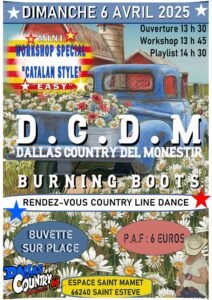 Le Dimanche 06 Avril 2025, Journée Country et Catalan chez *Dallas Country Del Monestir*, à partir de 13h30, Espace St Mamet, à St Estève (66240), Pyrénées Orientales .