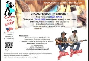 Le Dimanche 17 Mai 2026, Après Midi Bal Country avec Concert des *Blue Jeans*, de 13h30 à 18h00, au Centre Culturel , 1 rue de la République, à Hoerdt (67720), Bas Rhin.